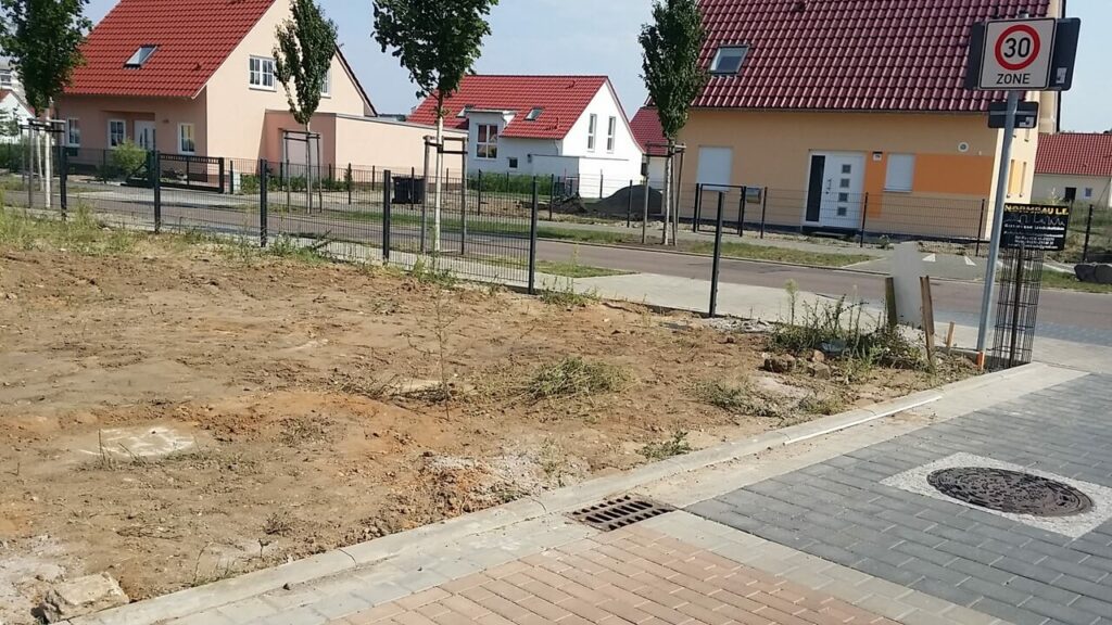 An der Stelle sind wir etwas blauäugig herangegangen, denn wir haben den Zaun während unser Haus gebaut wurde, montiert. Dementsprechend befand sich auch das Gelände im unbearbeiteten Zustand.